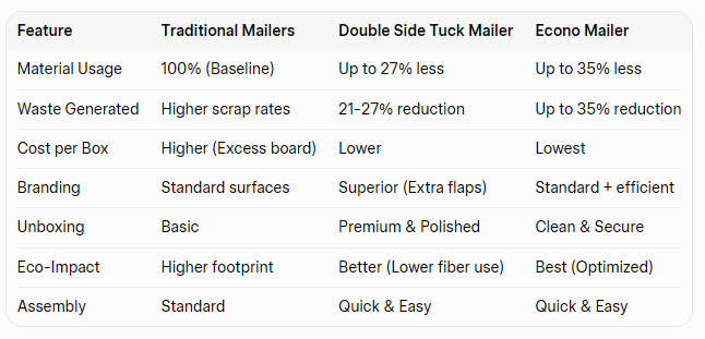 - Sustainability: Achieves a 21-27% reduction in material waste compared to standard mailers.